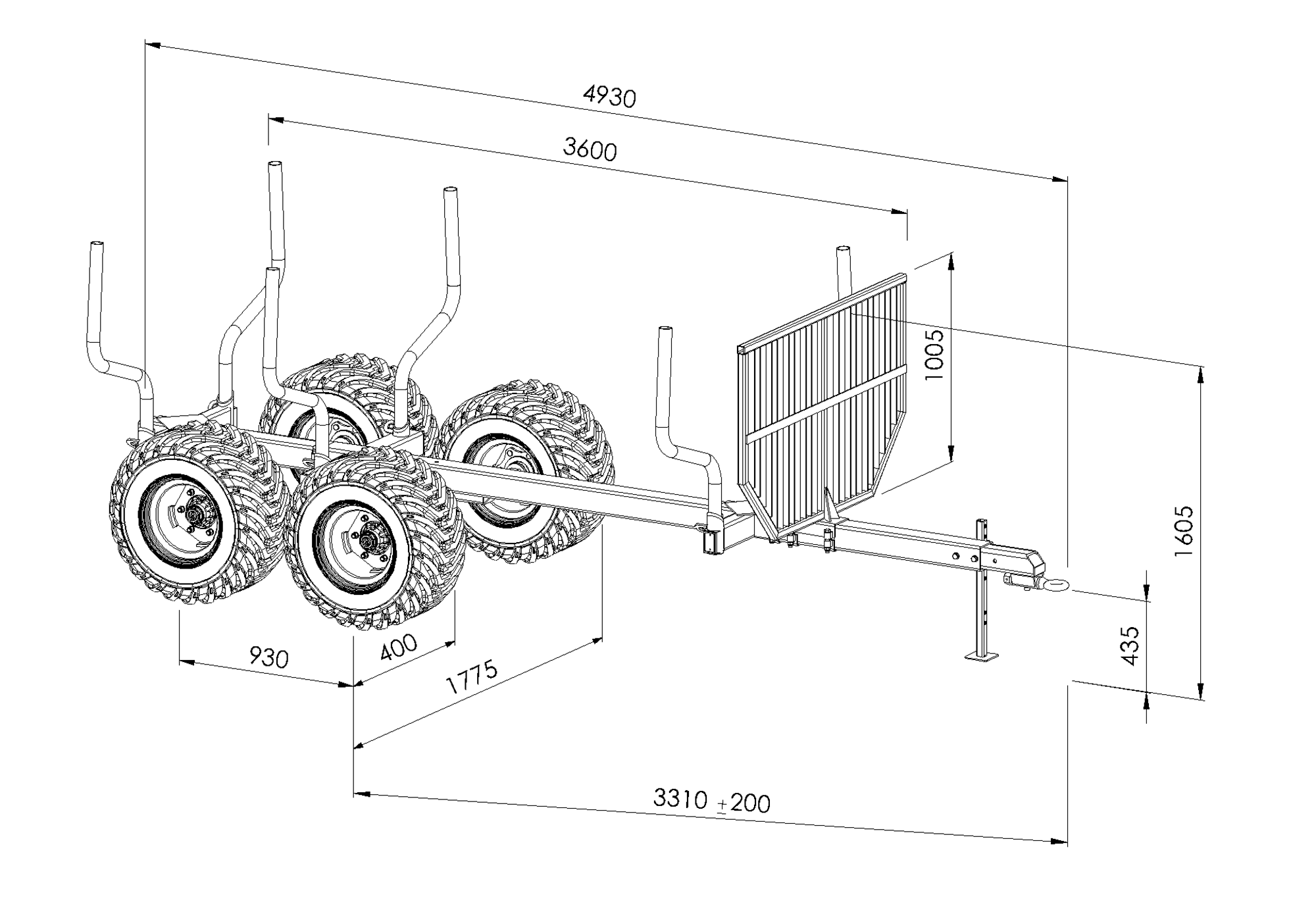 Haagise kaal ilma tõstuki ja ratasteta (kg) | 170 | 320 | 410 | 510 | 580 | 625 | 685 | 985 | 1095 | 1110 | 1220 | 1470 | 1540 | 1610 | 1700 |